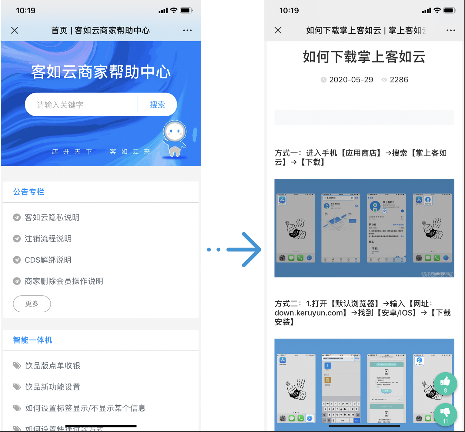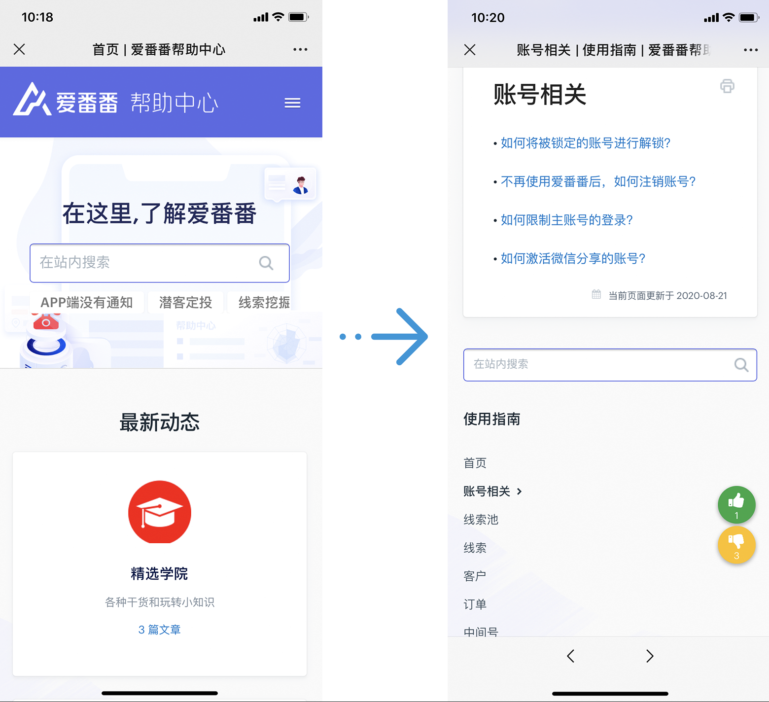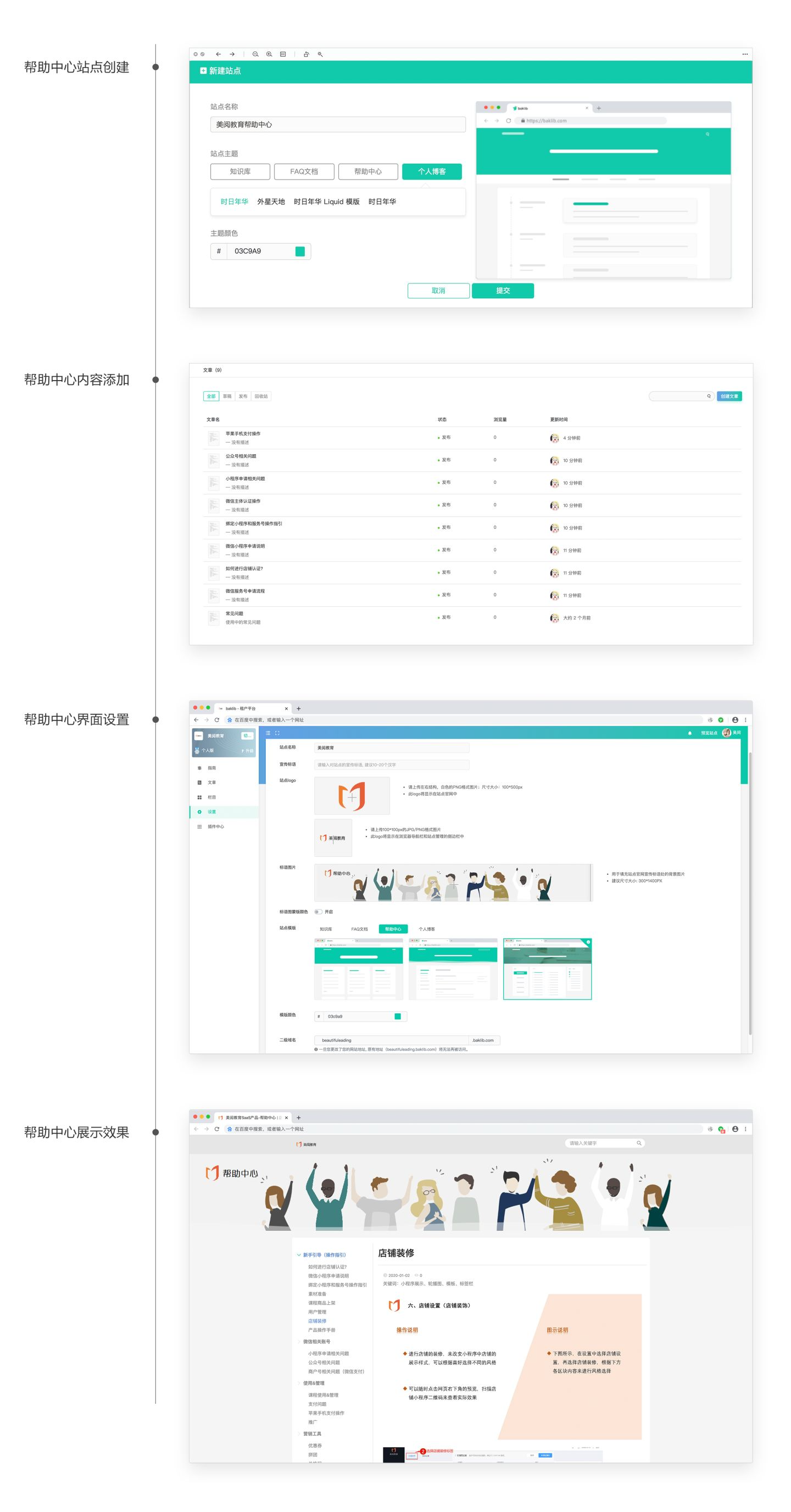 选择帮助中心主题,根据APP产品定位进行展示界面设置,以使帮助中心具最佳的效果。添加帮助中心内容,一键发布一个好看的APP帮助中心页面就出来了。