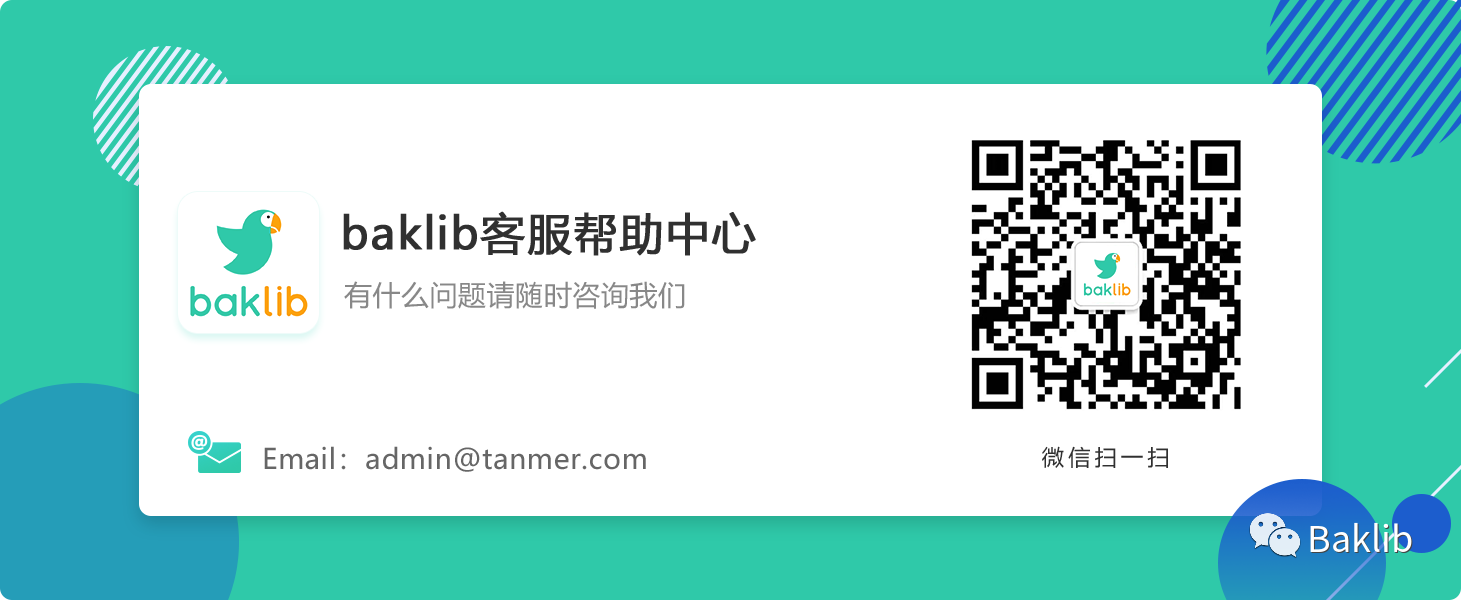感谢各位用户对Baklib长期以来的支持!如有任何疑问,可以扫描下图微信添加客服人员,我们将会在第一时间尽力帮您解决问题。