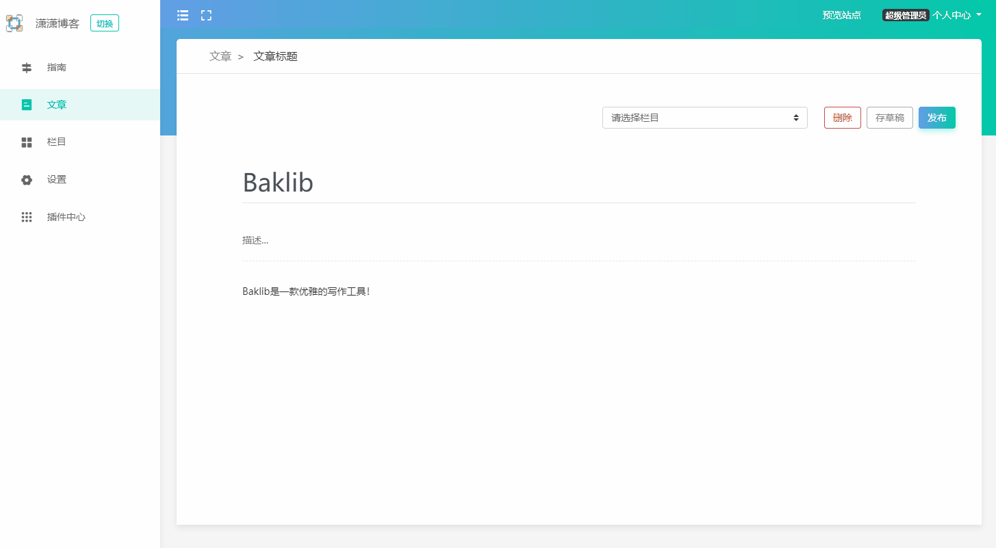 此次更新Baklib优化了文章的发布操作,将原先文章编辑左上角的状态框给移除。将右上角的“保存”按钮细化成“保存为草稿”和“发布”!