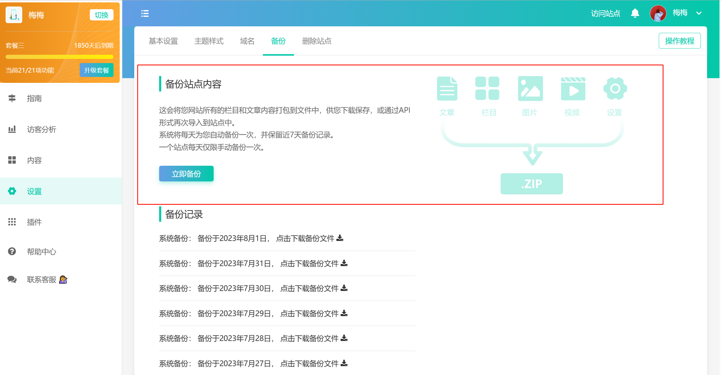 栏目分类对于一个文档工具至关重要,一旦内容多了之后如果没有有效的划分界面将变得十分杂乱;Baklib使用多级栏目将内容进行区分,提供了可视化编排界面,让产品说明手册内容仅仅有条。