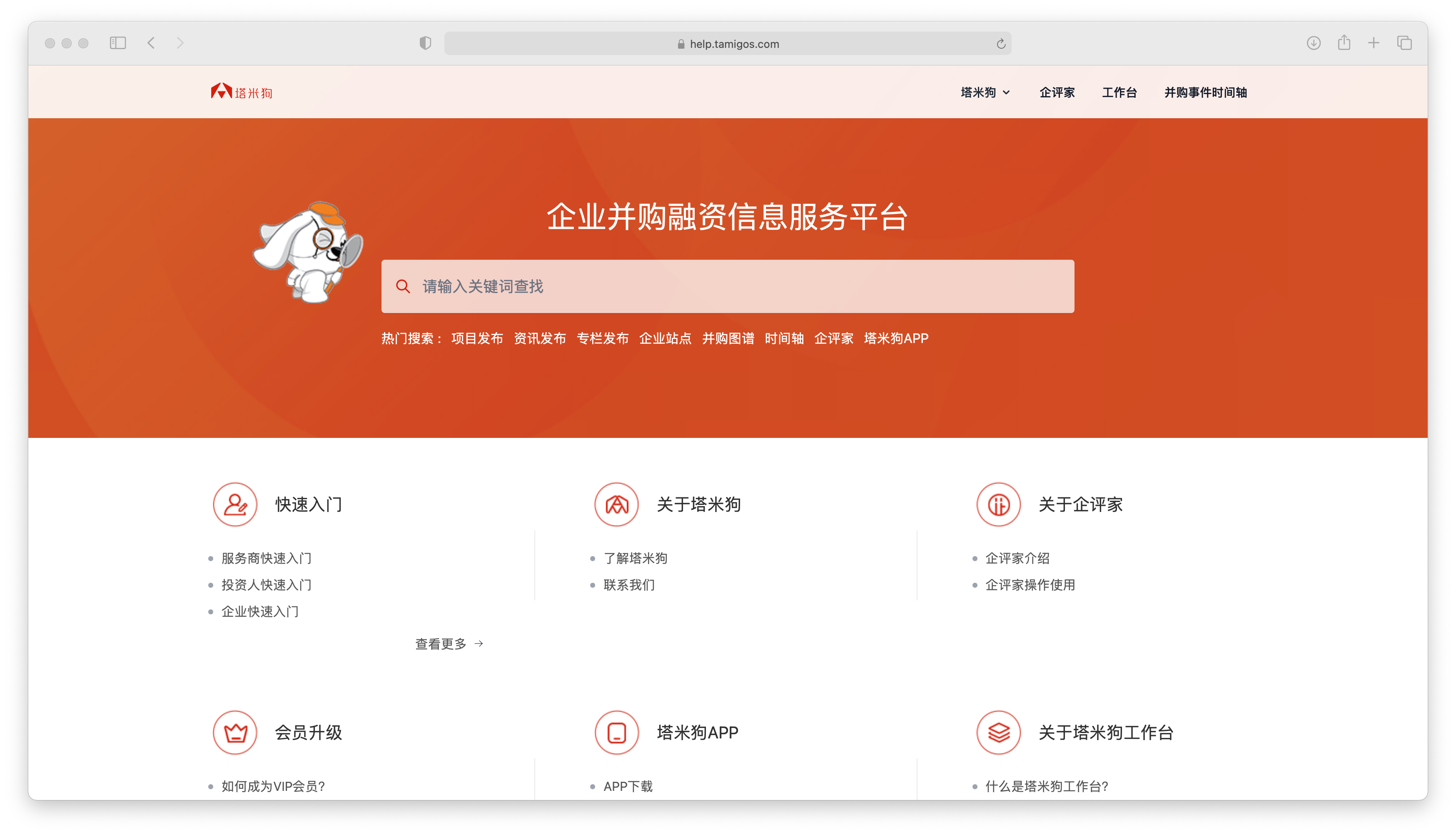 塔米狗是一款企业并购与融资信息服务平台,其容纳了海量投融资并购信息,我们通过Baklib搭建帮助中心,帮助用户能够更快更好的上手使用我们平台,提高用户使用体验,将我们平台的各个功能操作教程放入其中,用户在遇到问题时,能够轻松通过搜索找到解决方法,减少客服的工作量,提高工作效率。Baklib制作的页面简洁美观,页面参数都可以自定义,轻松制作出符合我们平台基调的页面,我们只需要做好内容,其它都交给Baklib,节约了我们不少时间。