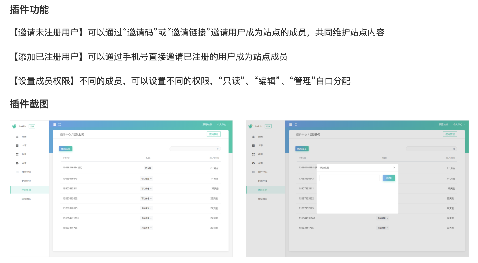 可以邀请多人一起为站点贡献内容,比如可以把撰稿、编辑、校对和审核的工作交给不同成员,各司其责,构建准确严谨的产品帮助中心/手册。