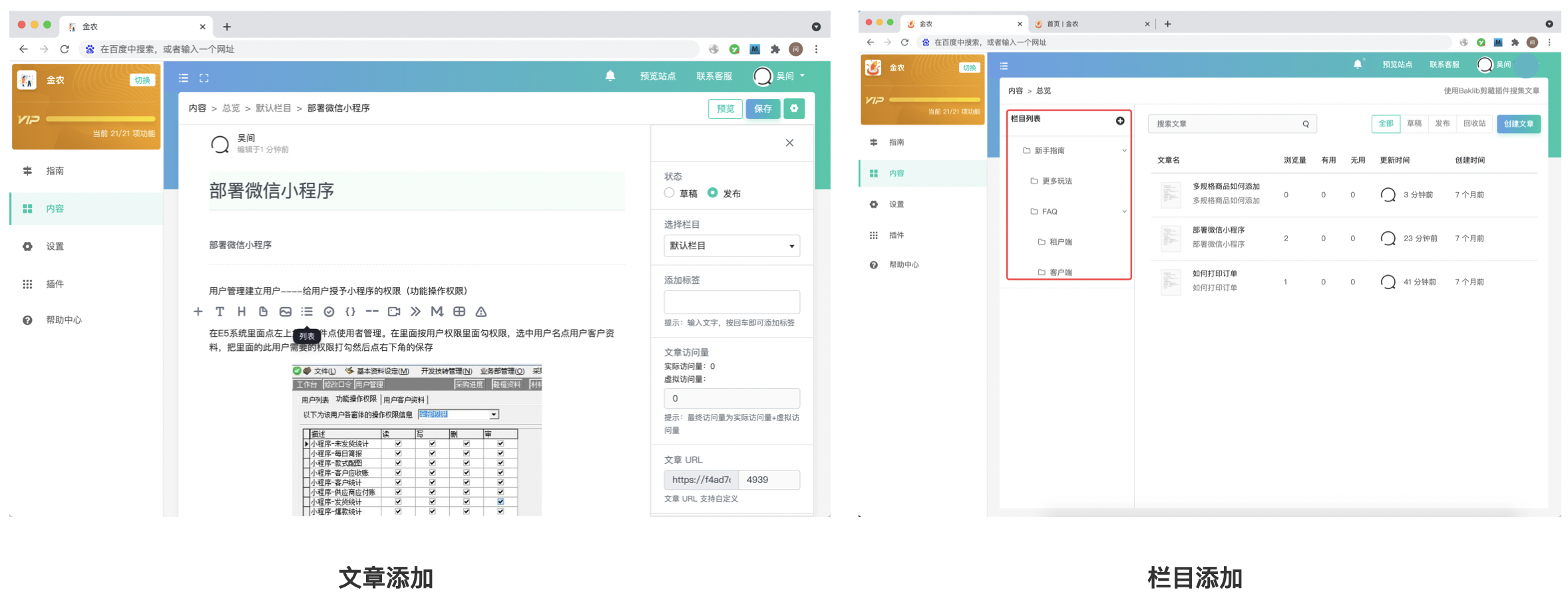 建立的文章需要放在栏目中进行存储,一是为了方便对内容的细化管理二是在前端展示的时候内容看起来更有结构性便于阅读。