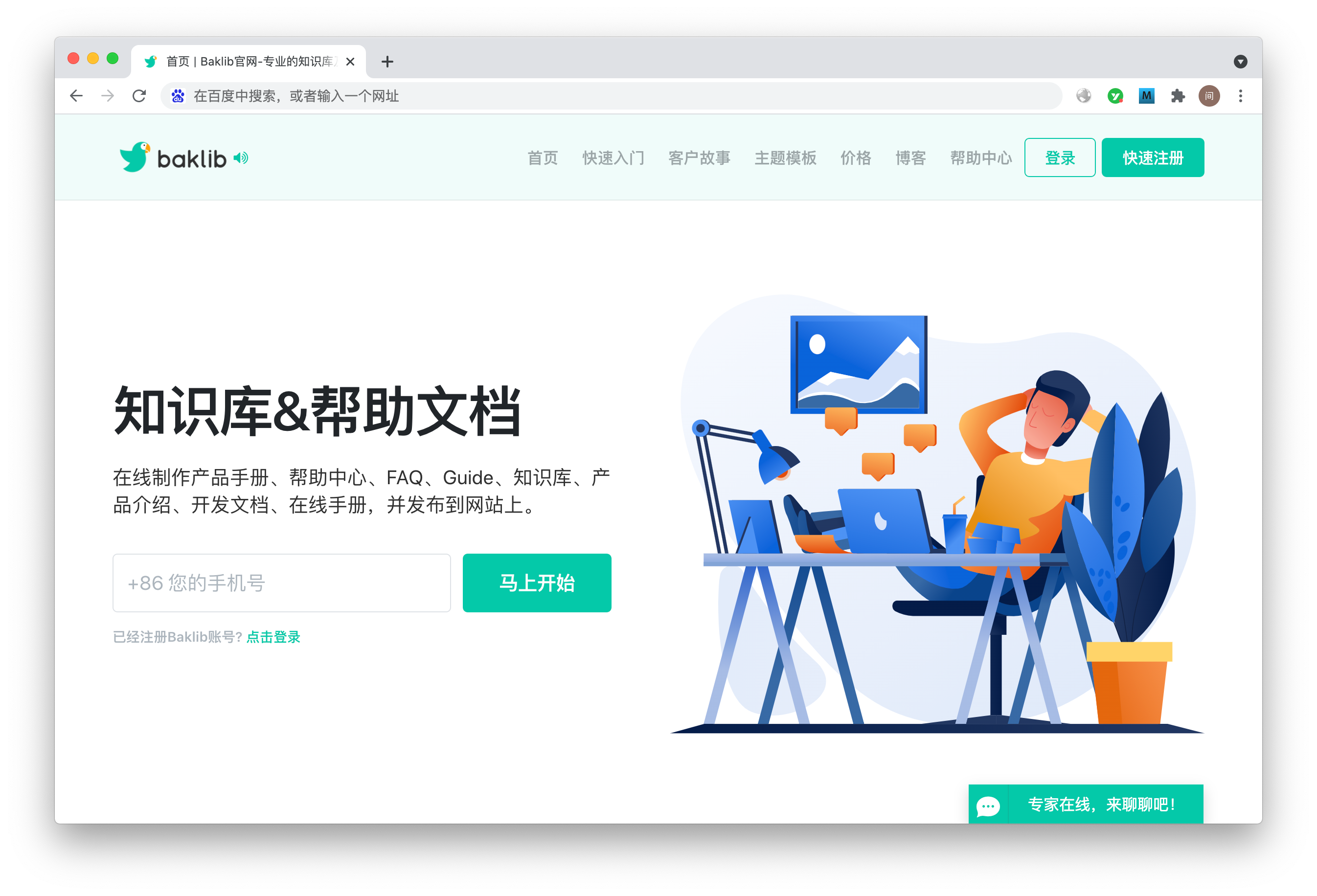 1.1、用浏览器打开Baklib官网,推荐使用谷歌/火狐。
